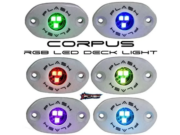 PLASHLIGHTS Corpus – RGB Carbon Fiber LED Deck Light – White Housing | CF-RL-RGB-S-WHT